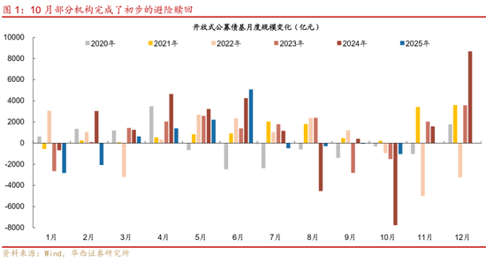 其次在基金负债维度,以协会口径数据作为参考,2025年1-10月开放式债基规模累计增幅仅为2561亿元,同比少增2465亿元,刷新2021年以来新低水平,10月(新规征求意见稿落地次月)开放式公募债基规模单月下滑1043亿元牛博,成为继1-2月下滑2825、2074亿元后,基金规模下降比较多的月份。背后原因除了行情难得回暖背景下的止盈诉求外,可能还有部分机构进行了初步的避险赎回。